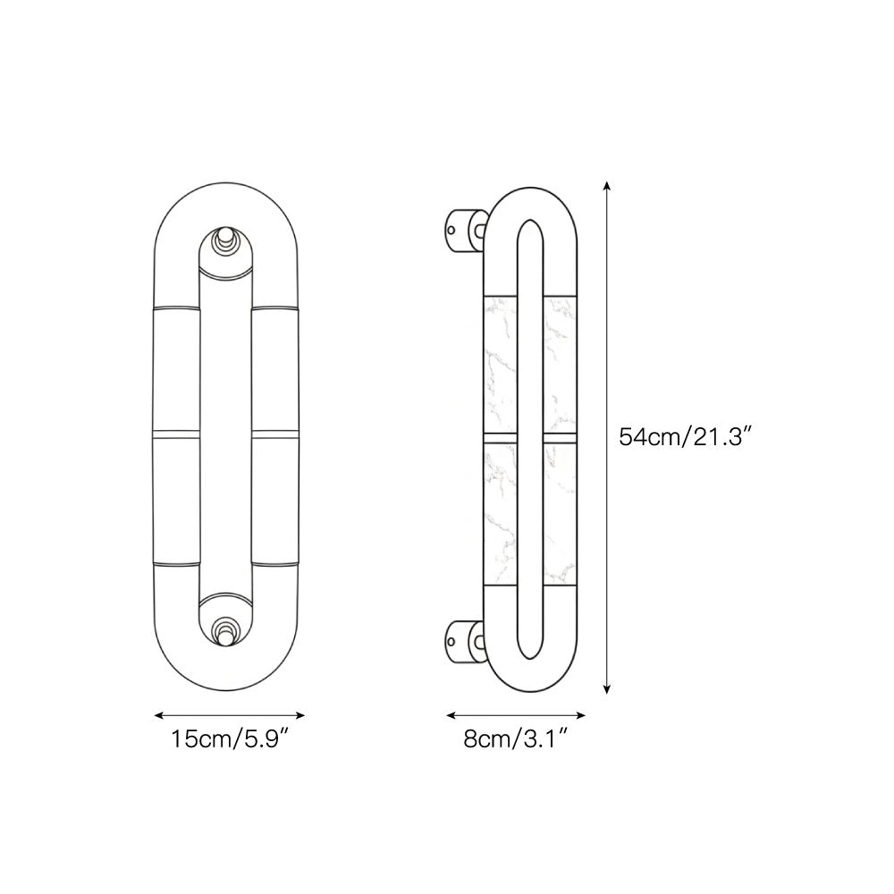 Elevate your space with the Alabaster Banded KoKo Sconce, expertly framed in sleek black stainless steel. Its natural alabaster veining gently diffuses light, casting a warm, ambient glow that enhances bathrooms, hallways, and modern interiors.