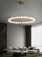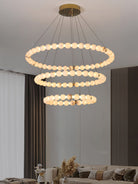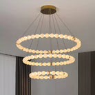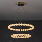 Elevate your space with celestial elegance through the blushlighting Lunalith Orb Chandelier. Crafted from radiant alabaster spheres arranged in a perfect circular orbit, this chandelier creates a glowing halo of soft, diffused light that feels both luxurious and ethereal.