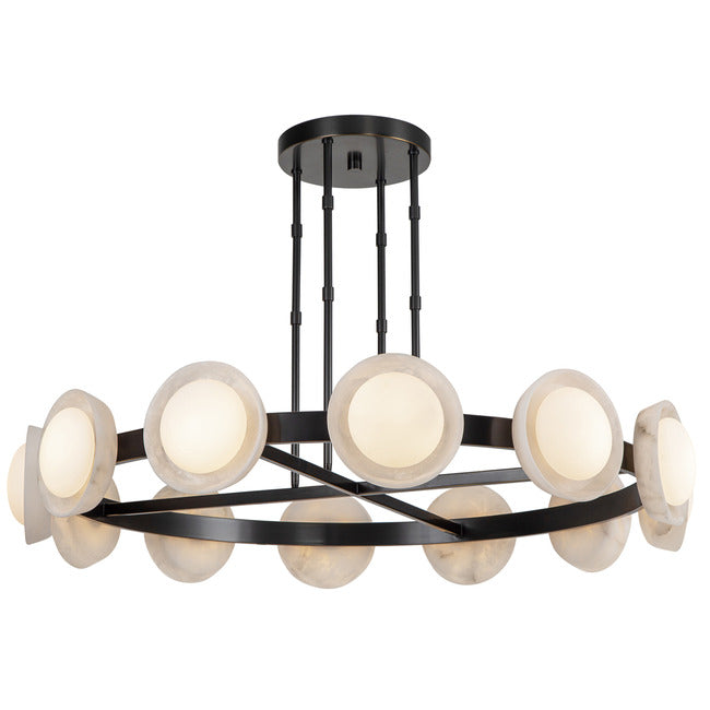 The Alonso XL Chandelier brings a modern look to a traditional style. The thick steel frame is solid or holds Alabaster plates, each with a glass diffuser, casting warm shadows across your room. Dimmable with Standard Triac or Low Voltage Electronic dimming.Note: Alabaster boasts distinct variations in both its veining and tone, a unique characteristic of a timeless natural material. No two pieces will look the exact same.