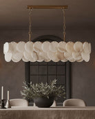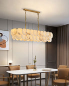 Rectangular Alabaster Chandelier Dia 100/120 with Round Shell Piece String Ceiling for Dining room