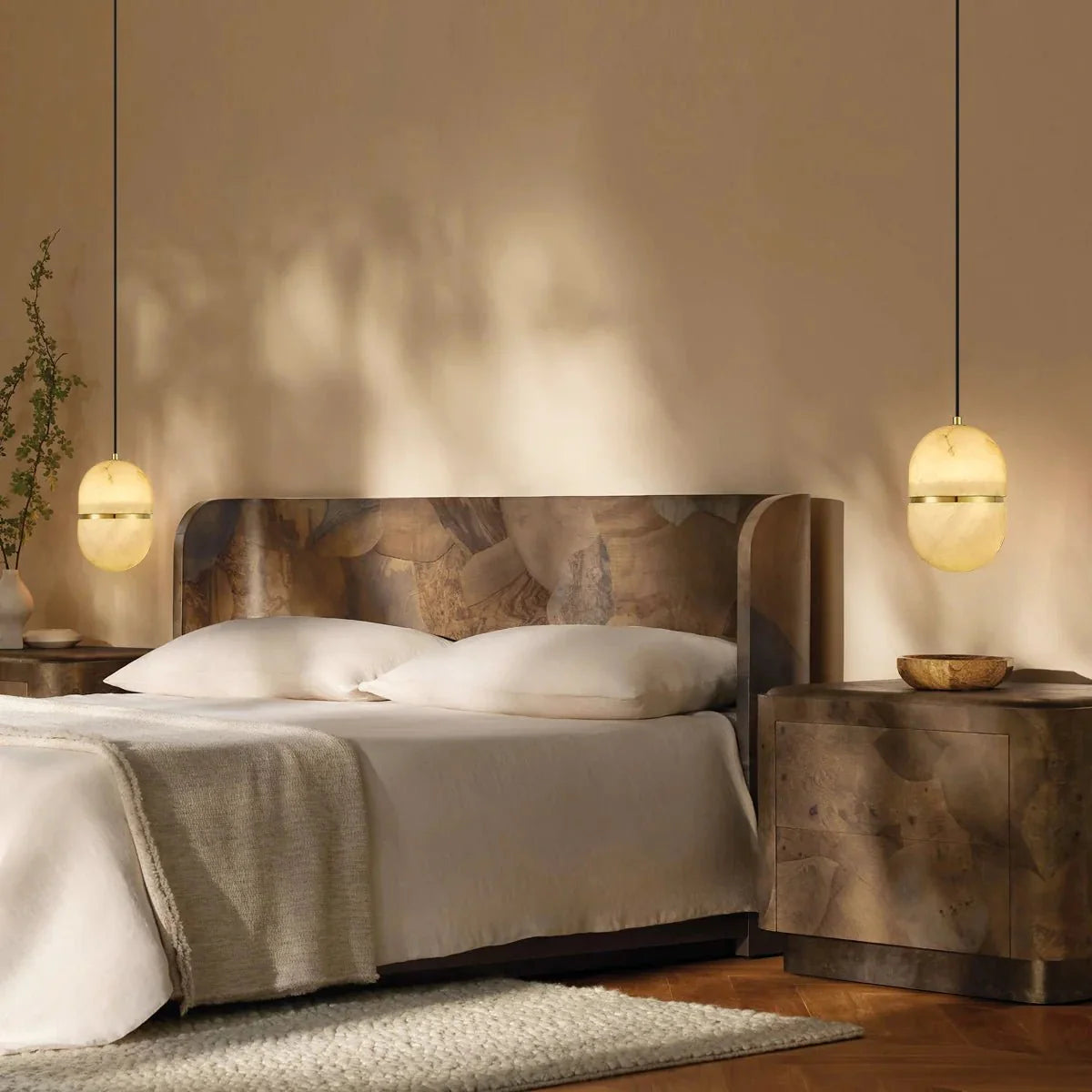 Crafted from premium Spanish alabaster, the shade not only ensures a captivating light effect but also imparts a warm and natural ambiance.