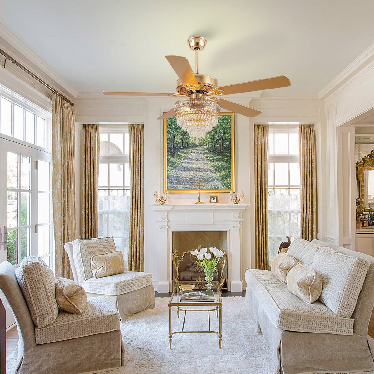 Our ceiling fan is designed with exquisite crystal lampshade on the traditional ceiling fan, which is safe and free of impurities, with good light transmission properties. Under the light, it looks elegant and romantic.