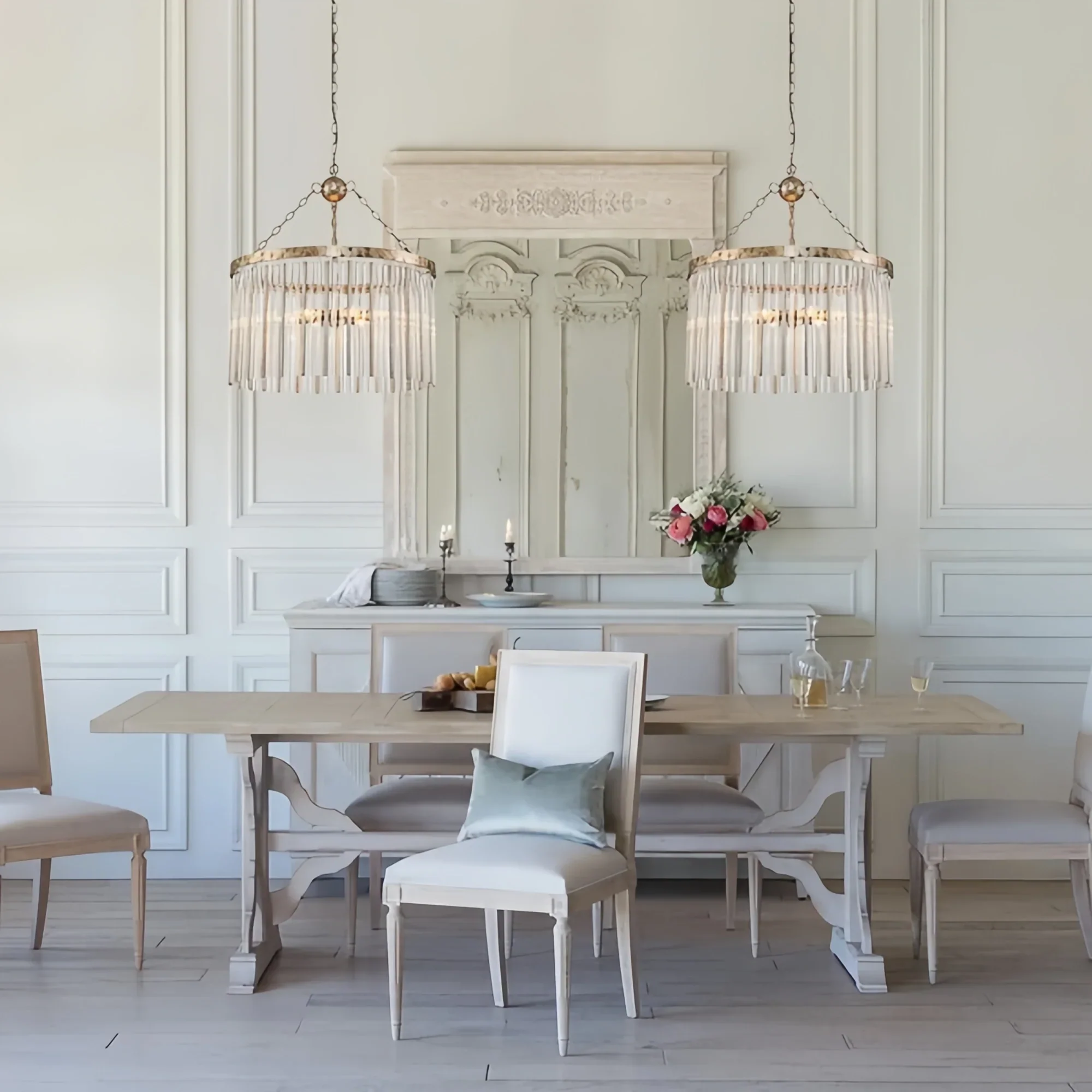 Stunningly elegant and enchantingly glamorous, our Andalucia Chandelier showcases glass crystals arranged around an iron frame with a hand-worked Antique Silver foil finish.