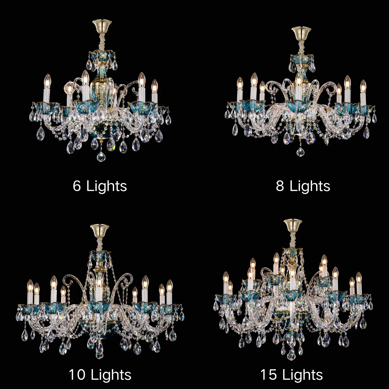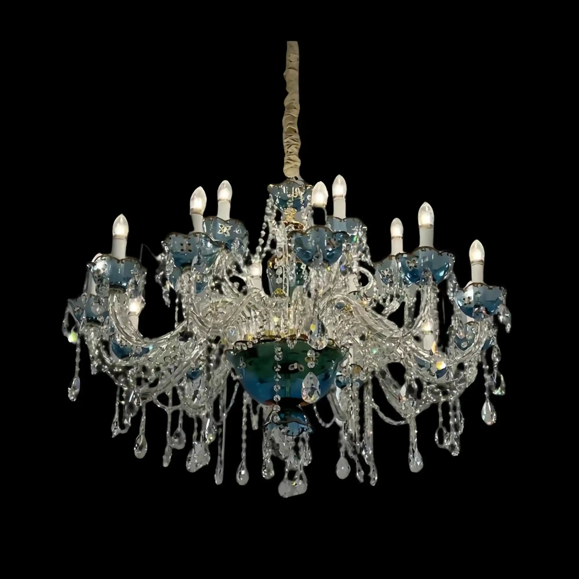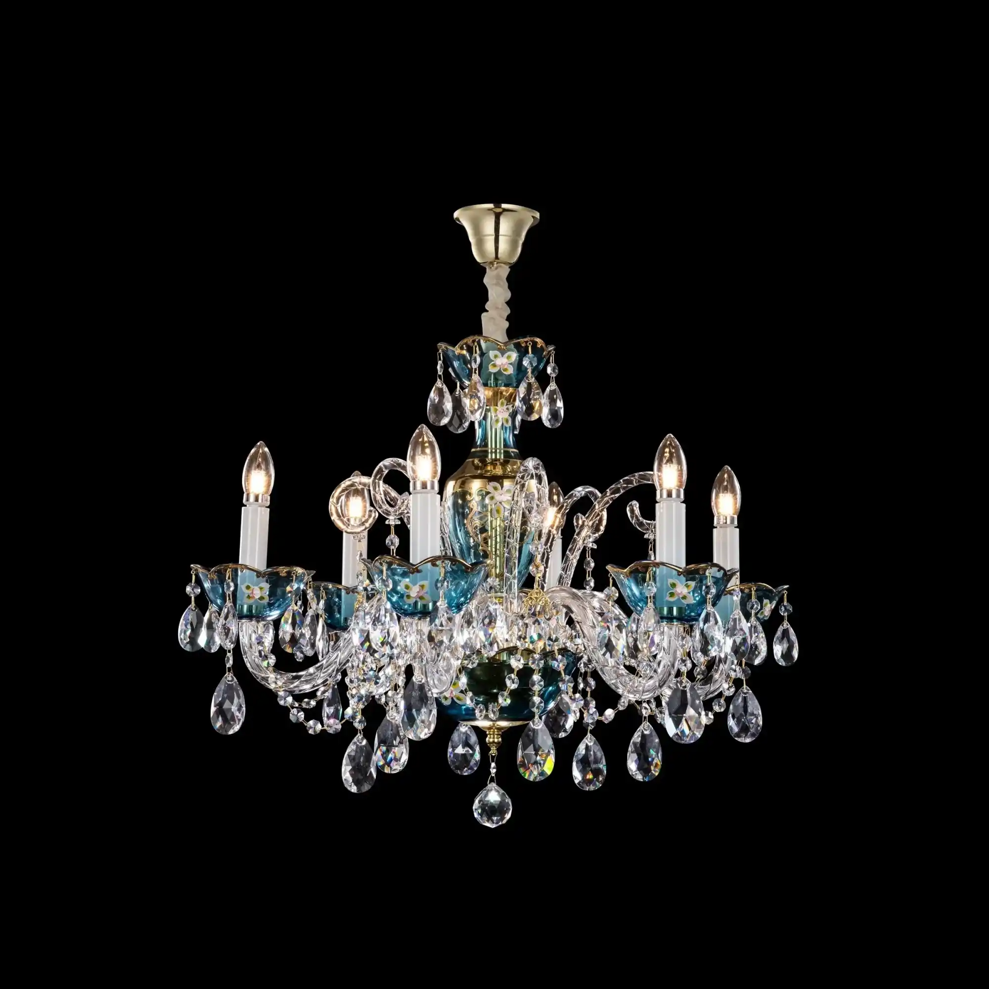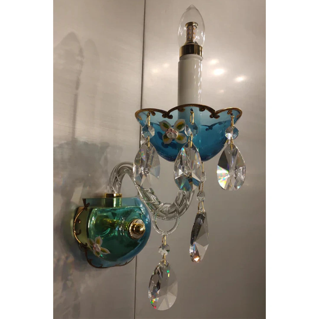 The premium embodiment of the Azure Crystal Chandelier Collection: Mystic Victorian Blue with Clear Light Crystal. The blue crystal shimmers dazzlingly, as if falling into the sea, the crystal pendant hangs below the blue bone dish, and the wind blows, bringing a gust of sound, this lamp decorated in any place in the home will be amazingly beautiful: the flowing light is both mysterious and dreamy, starlight with moonlight, highlighting the secluded romantic atmosphere.