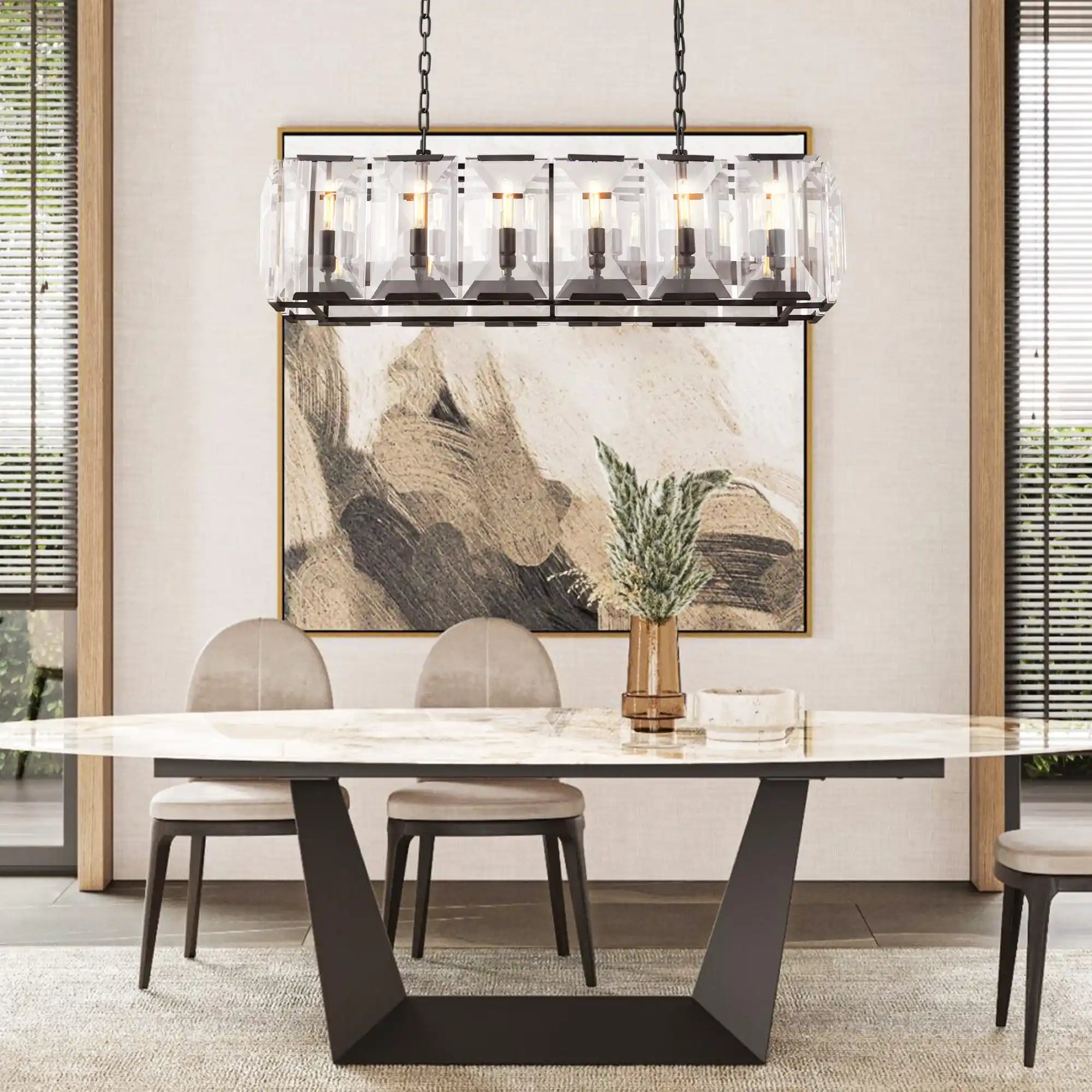 Herlow Crystal Rectangle Chandelier Elegant Ceiling Light Fixture for Dining Room