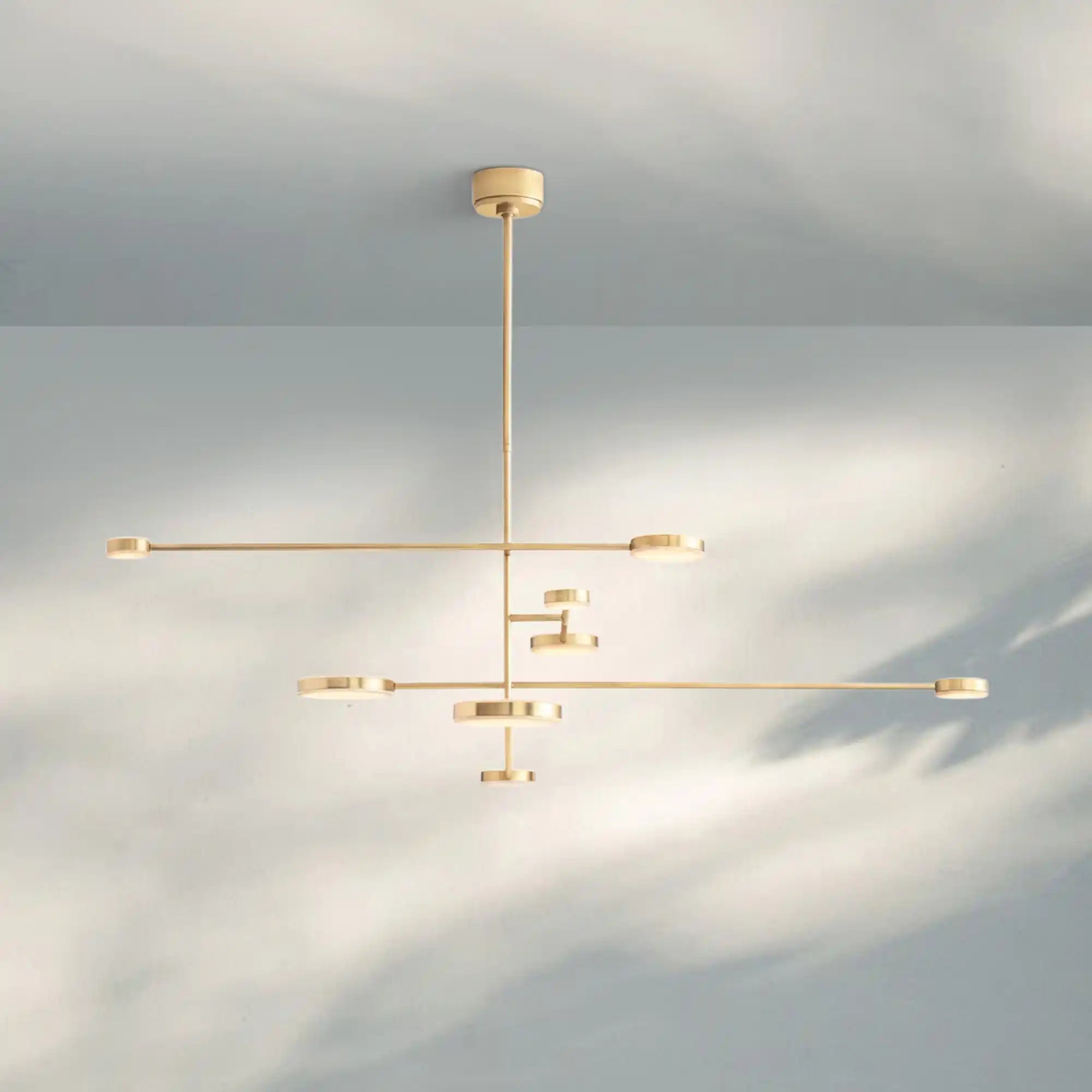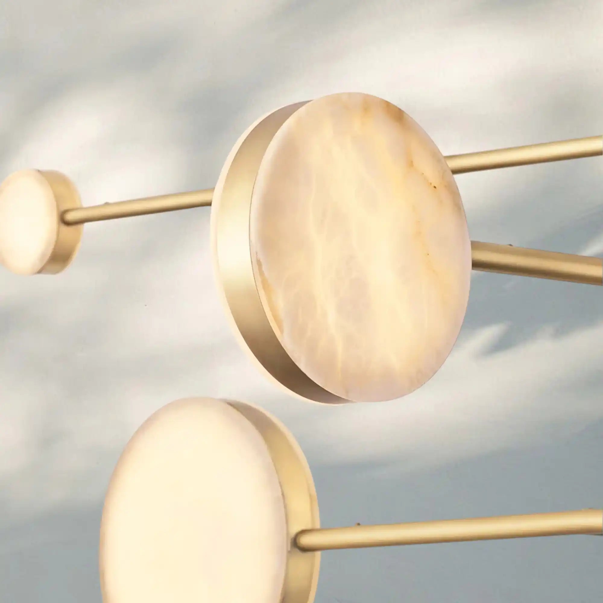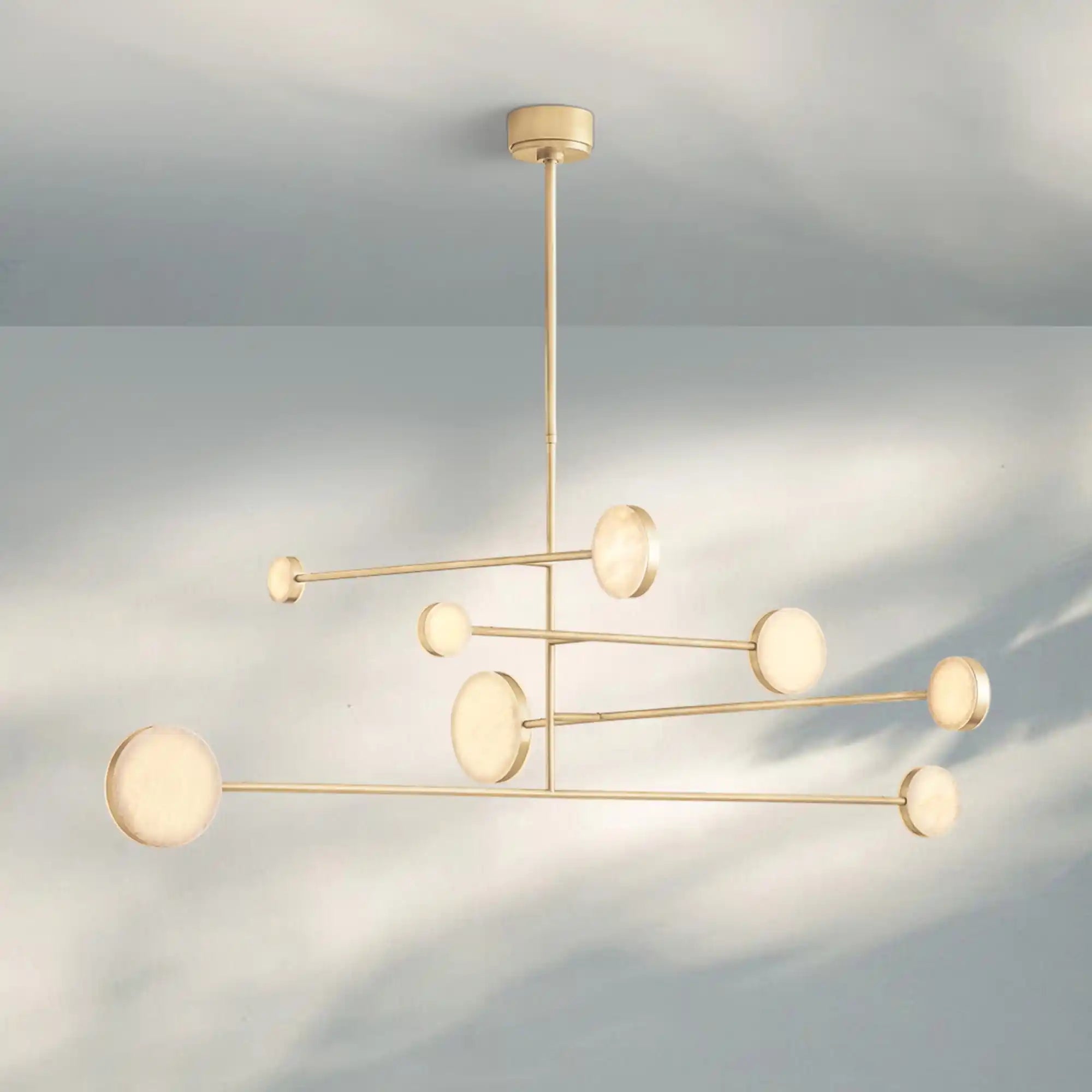 A study in balance and proportion, the contemporary Alexander collection by Chicago-based designer Ian K. Fowler blends art and functionality. Each alabaster disk can be rotated to direct illumination wherever it's preferred, while the slender arms create a kinetic dance of movement in space.