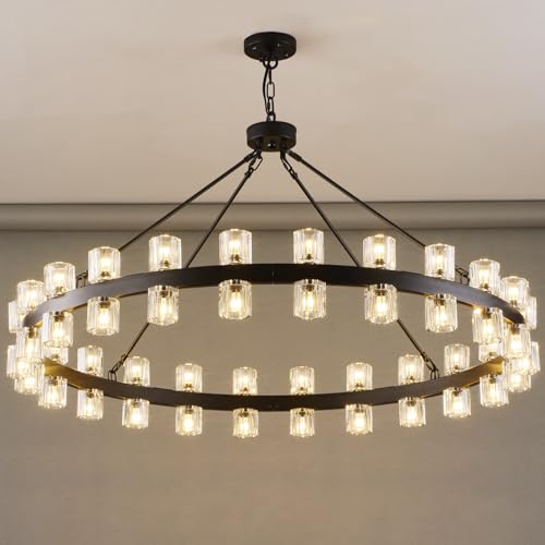 Add a touch of farmhouse chic with this black wagon wheel chandelier, featuring sixteen dazzling K9 crystal lights that flood any room with warm glow. The sturdy metal frame resists rust and supports adjustable hanging rods for custom heights up to three feet. Each crystal shade is meticulously cut for brilliant refraction, turning everyday lighting into a sparkling centerpiece. Easy‑install design means you’ll be enjoying its luxury look in no time.