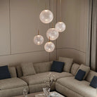 Illuminate your living space with the Casens Round Chandelier, a masterpiece of contemporary lighting design. This stunning centerpiece features expertly crafted glass globes that gracefully drop from premium satin brass hardware. Whether you choose the ethereal Matte Opal or the textured Crackle Glass, each globe is mouth-blown by skilled artisans, ensuring your home features a unique, organic touch that captures the light beautifully.