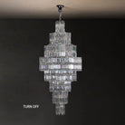 The whole light body is made of high-quality K9 crystal and stainless steel. It is designed into a luxury modern style. It is absolutely stunning no matter light turns on or not.