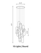 - Round - 10 Lights - 31.5" D × 177" H / 80cm D x 449.6cm H