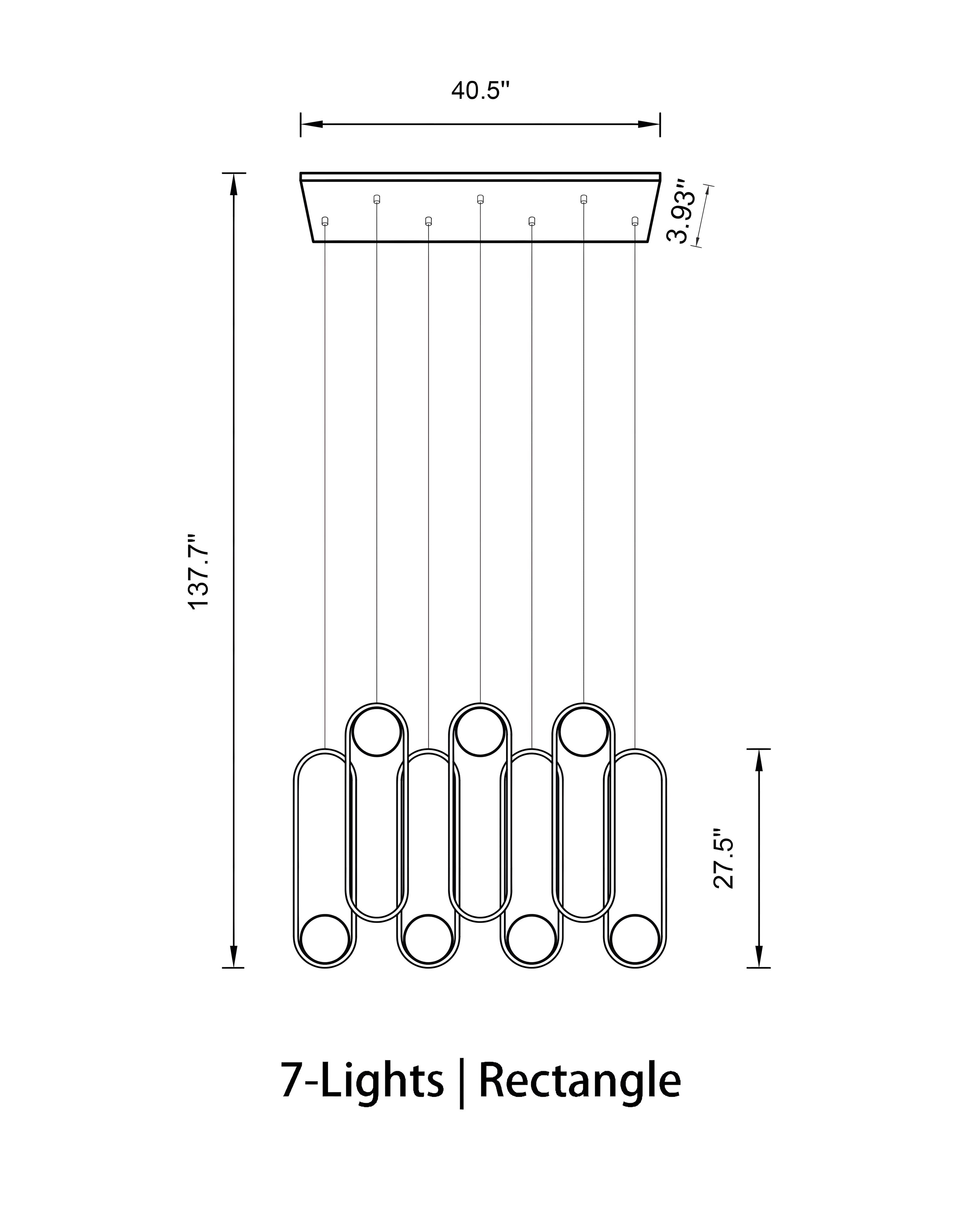 - Rectangle - 7 Lights - 40.5" L × 3.93" W × 137.7" H / 102.9cm x 10cm W x 349.8cm H