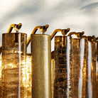 Inspired by traditional Chinese Murano fixtures, our Neve Collection layers cast glass and metal into a richly textural, light-catching form. Offered in burnished brass with bronze glass or champagne silver with clear glass, each mixed-material piece glows with sculptural depth and artisanal character.