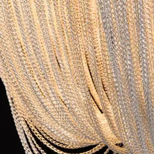 The body of this chandelier is made mostly of metal and aluminum materials, which are treated with multiple processes for saturated color and durability. The intricate hand-woven aluminum chain has a delicate texture, simple and natural. The aluminum chain is dotted with several teardrop-shaped high-transmittance crystals with smooth surface and soft and warm light. It is absolutely stunning whether the light is on or off. Suitable for a variety of applications, including villas, duplexes, living rooms with high ceilings, etc.