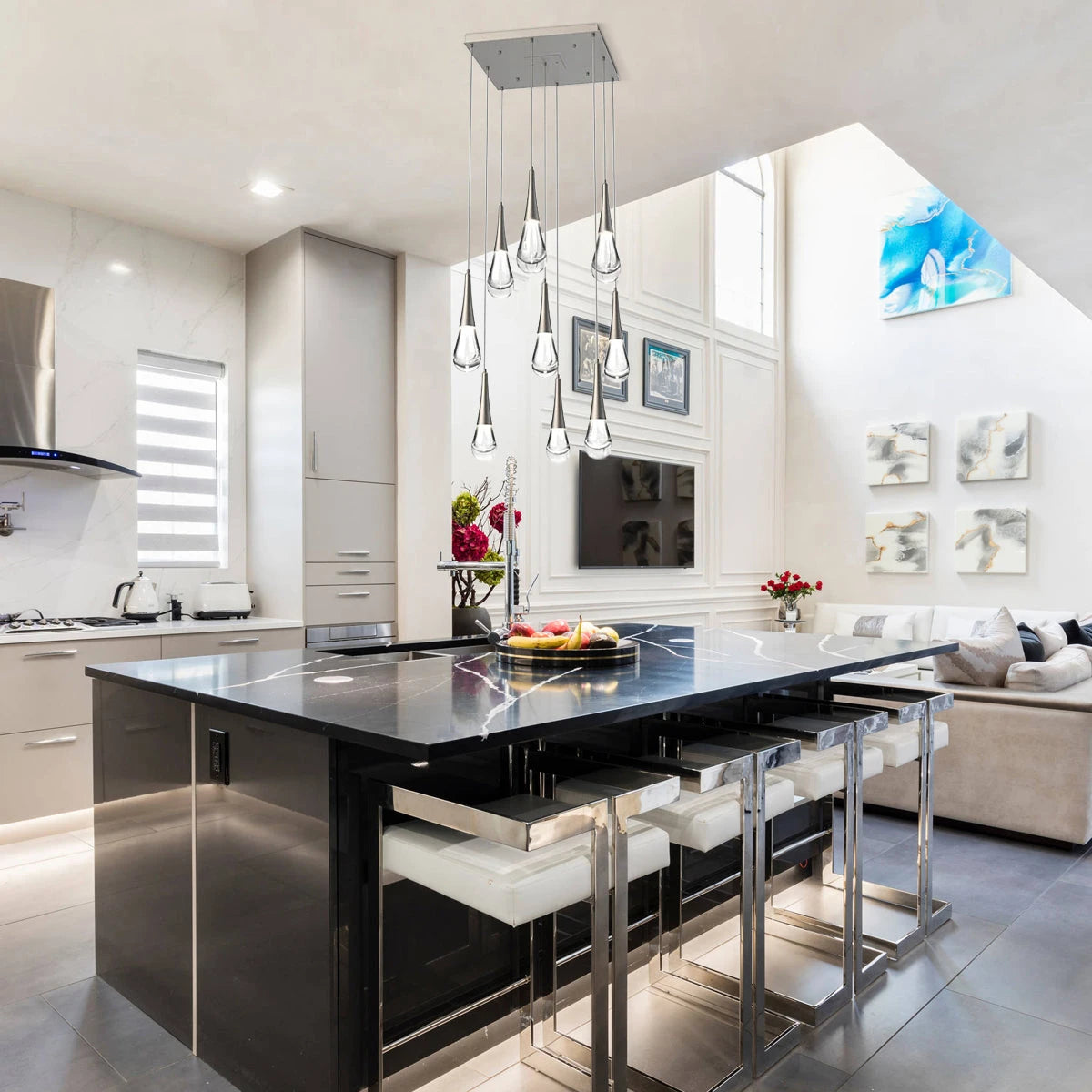 Rain 9-Light Square Chandelier Pendant For Living room Family room Dining Room Bedroom