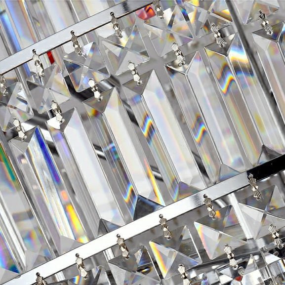 The whole light body is made of high-quality K9 crystal and stainless steel. It is designed into a luxury modern style. It is absolutely stunning no matter light turns on or not.