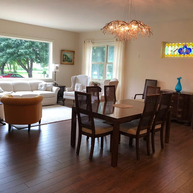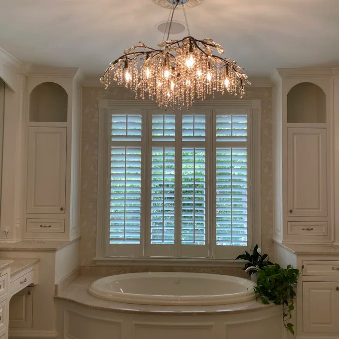 The body of this chandelier is made of metal and crystal, with a multi-crafted finish for saturated color and durability. This American style light luxury chandelier, hand beaded and crafted as a personalized art lamp, with a design inspired by the twilight leaves of autumn and an old gold and silver texture symbolizing life and feeling the age, this chandelier for home decor is sure to catch everyone's eye. It is absolutely stunning whether the light is on or off. Ideal for installation in living rooms, dining rooms, cafes, and more.