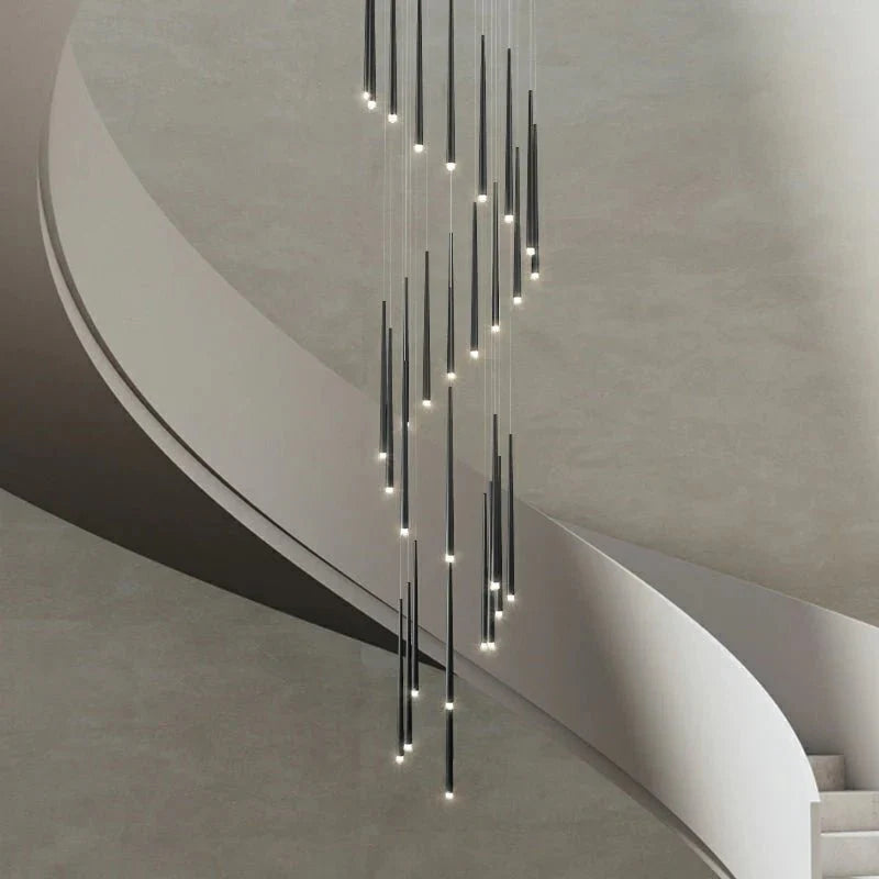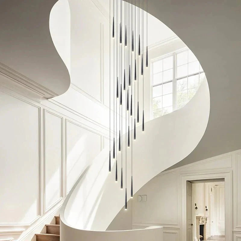 Minimalism Foyer Staircase Chandelier Ceiling Pendant Lighting Fixture For Living Room Entryway In Gold/ Black Finish