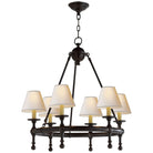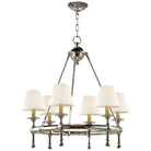 This six-light chandelier is defined by its balanced proportions and clean architectural presence. Designed with a restrained silhouette and precise detailing, it delivers warm, evenly diffused illumination that complements refined interiors without visual excess.