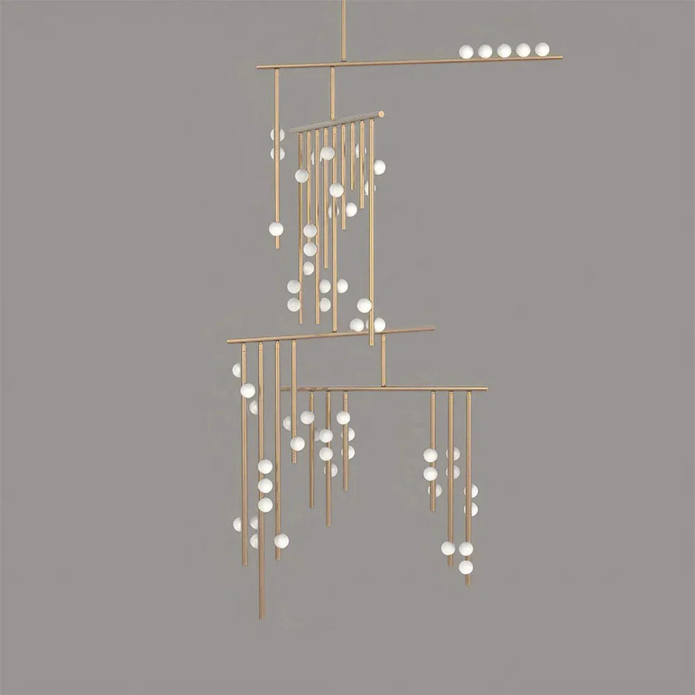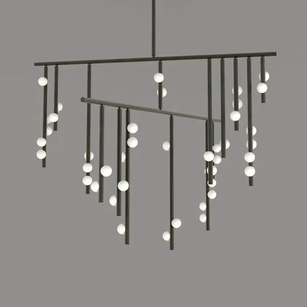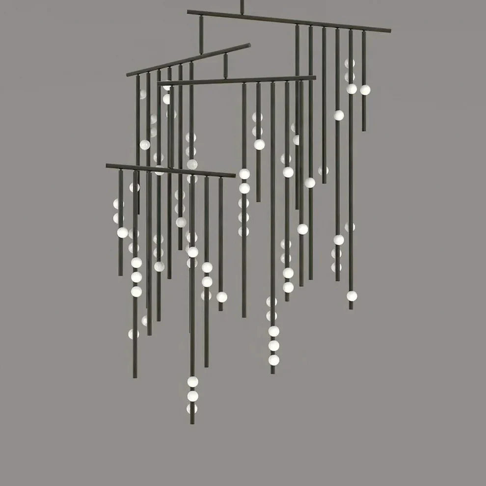 Elevate your space with the Brass Drop System Chandelier. Its flexible joints effortlessly capture the essence of organic movement, while delicate blown glass orbs add a touch of natural sophistication. Available in elegant finishes like brass and black, this chandelier is the perfect fusion of form and function.