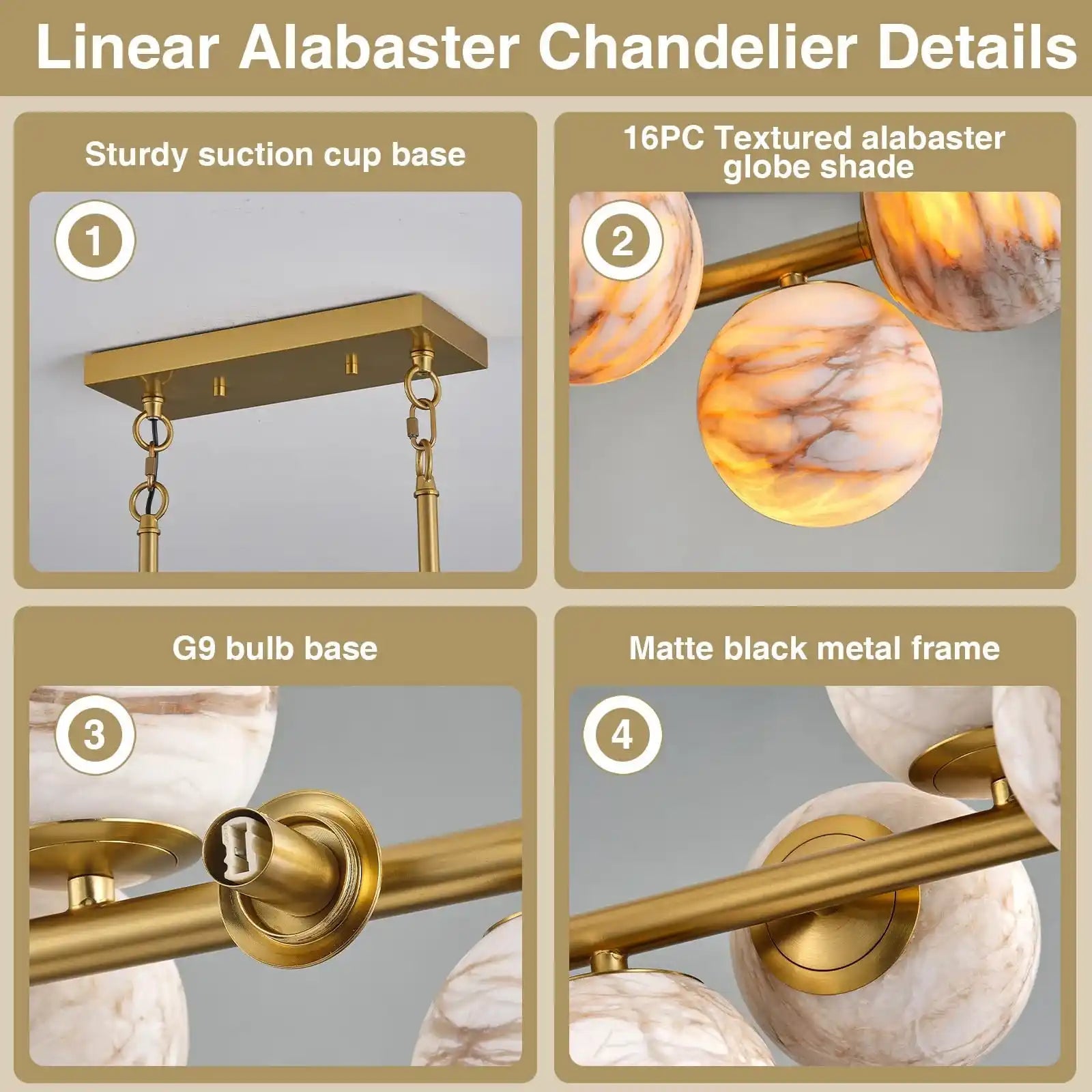 - Premium Build for Lasting Quality: Constructed with a high-quality metal frame and durable alabaster globes, this chandelier is built to last. Expert craftsmanship ensures both enduring beauty and reliable performance.
