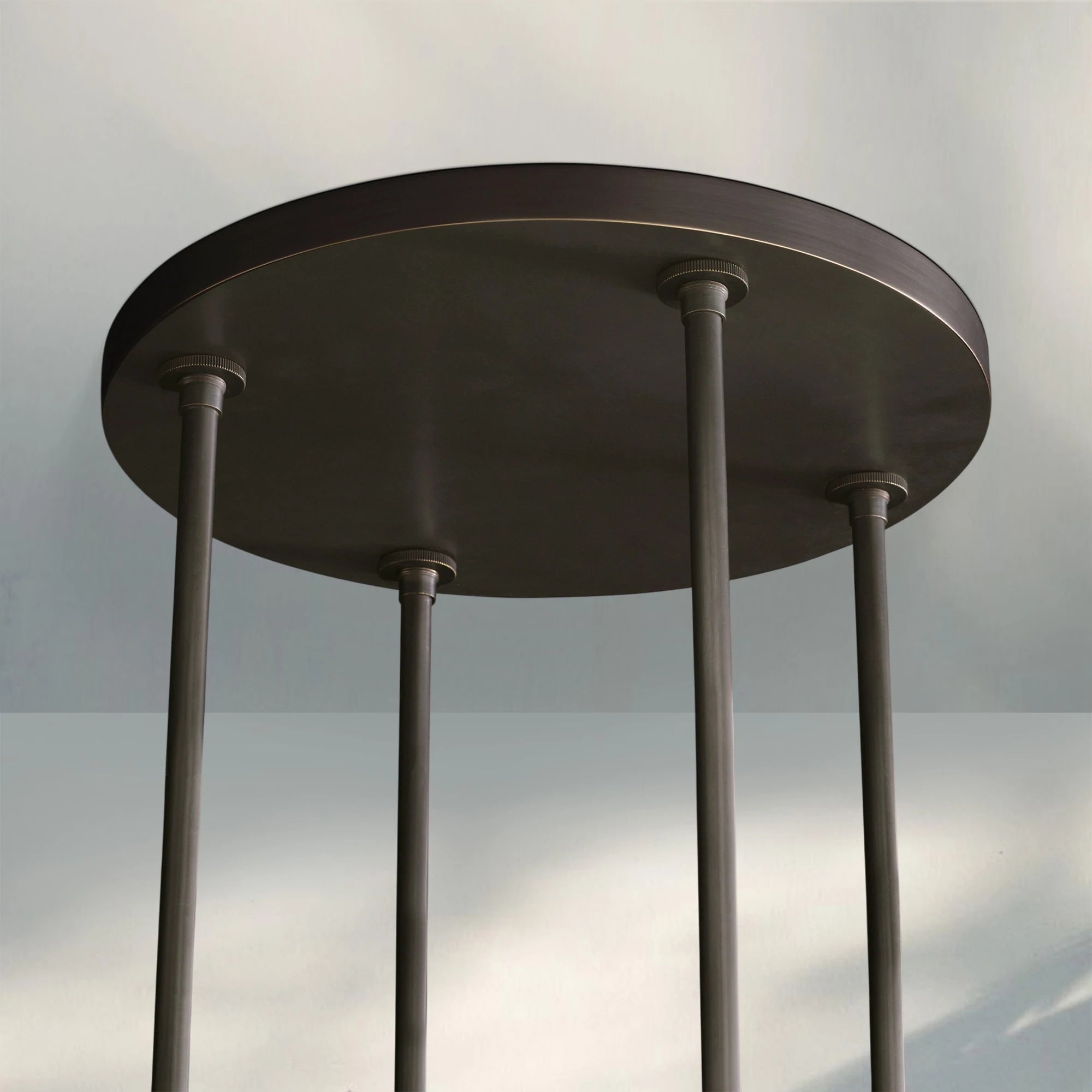 Art Deco forms are reimagined with a modern minimalist sensibility in this collection from renowned lighting designer Ian K. Fowler. Crafted of solid steel, unadorned metal bands hold the slender glass cylinders in place, in a state of perfect equipoise. Within each, Edison bulbs glow with the warmth of candlelight.