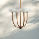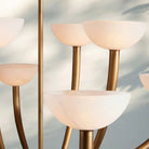 Boasting a contemporary silhouette and natural alabaster shades, our Saguaro Chandelier makes a statement in any space. Each piece features a unique stoving varnish technique to create the antique brass or bronze finishes that complement the cream color tones in the alabaster stone.