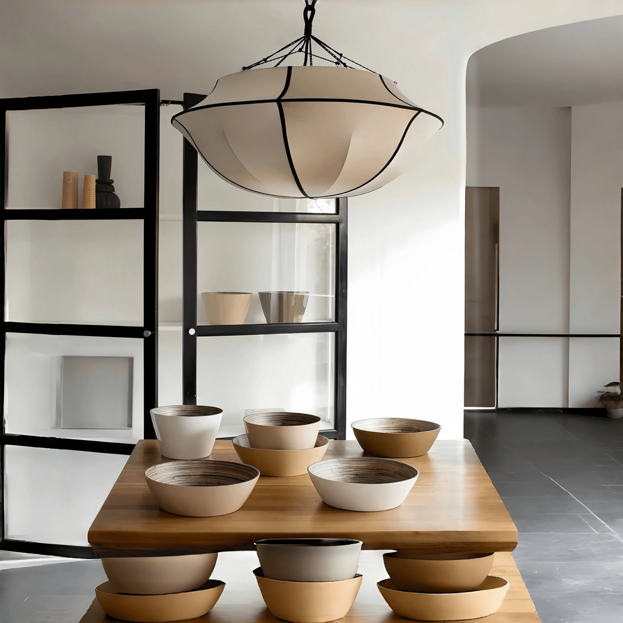 Vintage French Style Cream White Silk Umbrella Chandelier