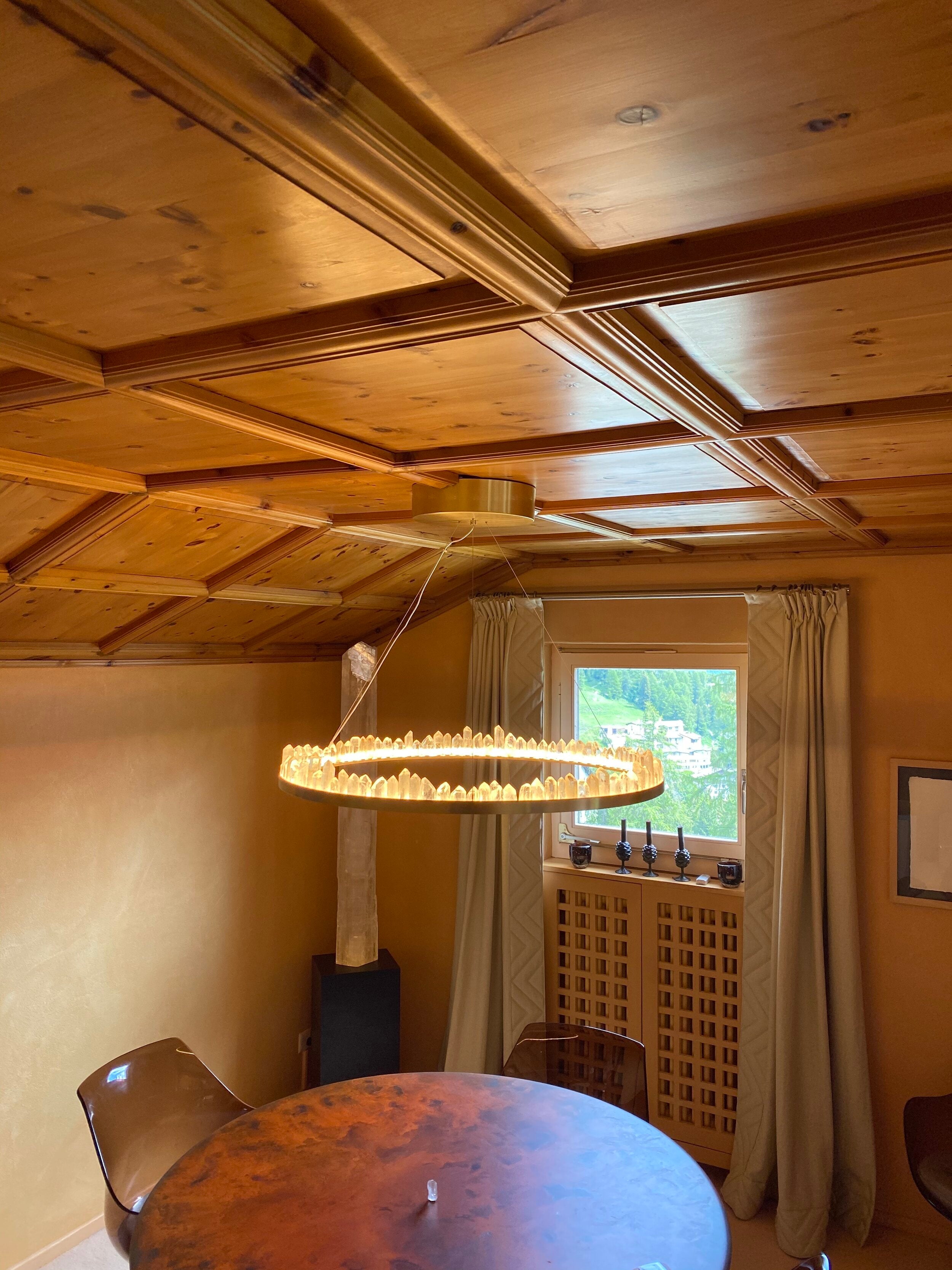 Modern Style Rings Brass & Natural Quartz Crystal Chandelier in Brass/Black Finish