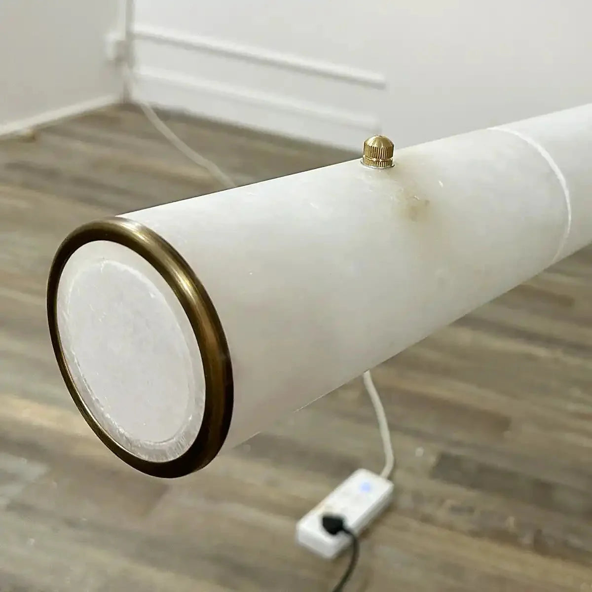 The Alabaster Modern Art Linear Chandelier boasts a sleek linear design, elevated by its alabaster shade, creating a standout fixture. Crafted from premium Spanish alabaster, the shade not only ensures a captivating light effect but also imparts a warm and natural ambiance.