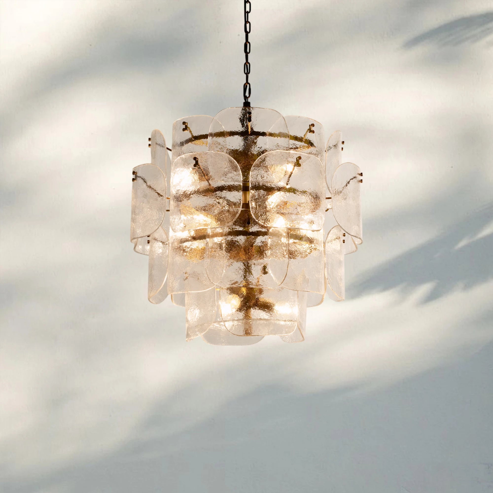 Crafted from molten glass that’s molded into curved panels, our Blaire Lighting Collection is elegantly sculpted where each panel delicately overlaps one another to create a sense of depth and movement—diffusing light in a way that feels both soft and architectural. Presenting a curated palette of crystalline clear, pearlescent white, or rich umber tones, Blaire emits an ethereal glow in any room.