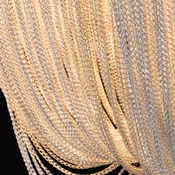 The body of this chandelier is made mostly of metal and aluminum materials, which are treated with multiple processes for saturated color and durability. The intricate hand-woven aluminum chain has a delicate texture, simple and natural. The aluminum chain is dotted with several teardrop-shaped high-transmittance crystals with smooth surface and soft and warm light. It is absolutely stunning whether the light is on or off. Suitable for a variety of applications, including villas, duplexes, living rooms with high ceilings, etc.