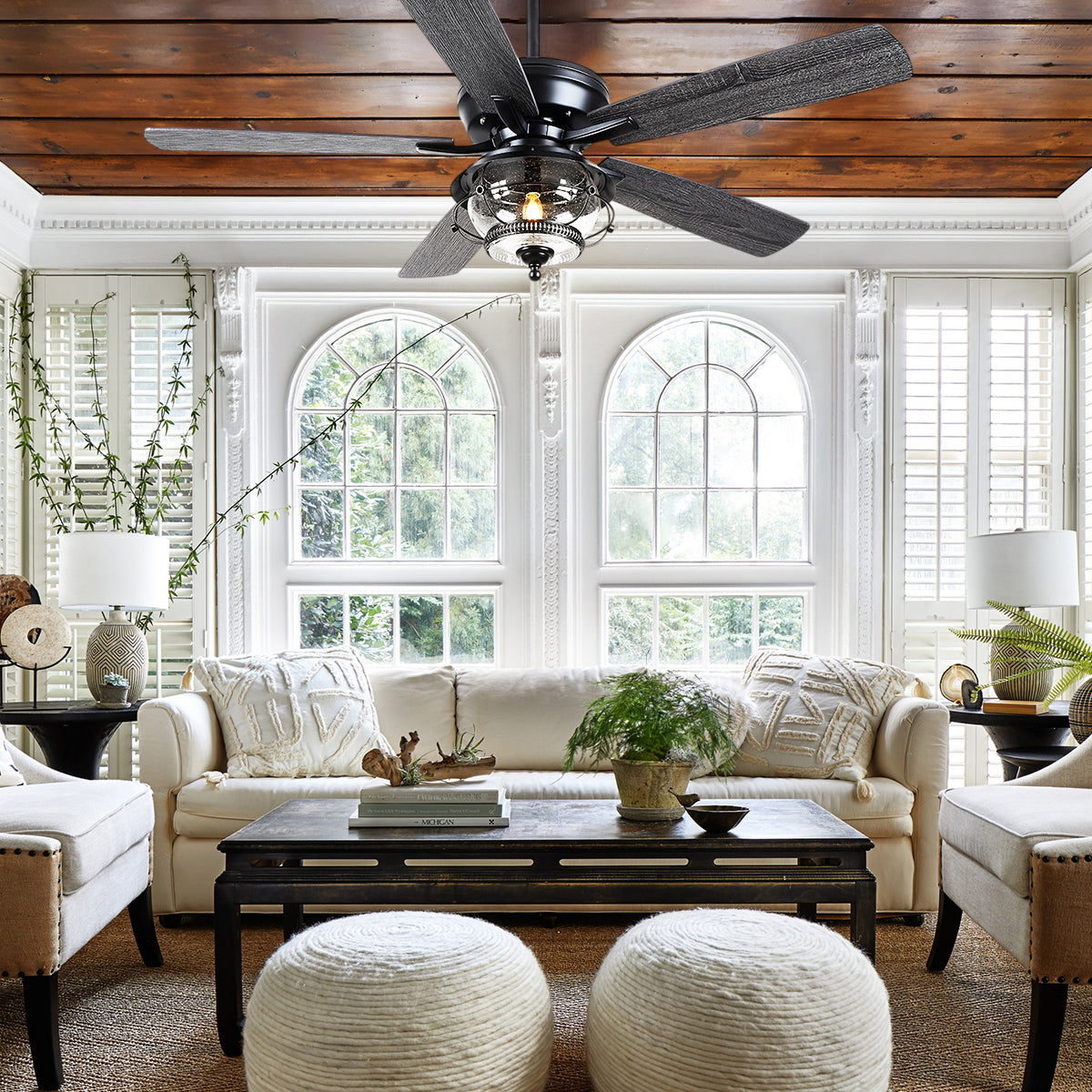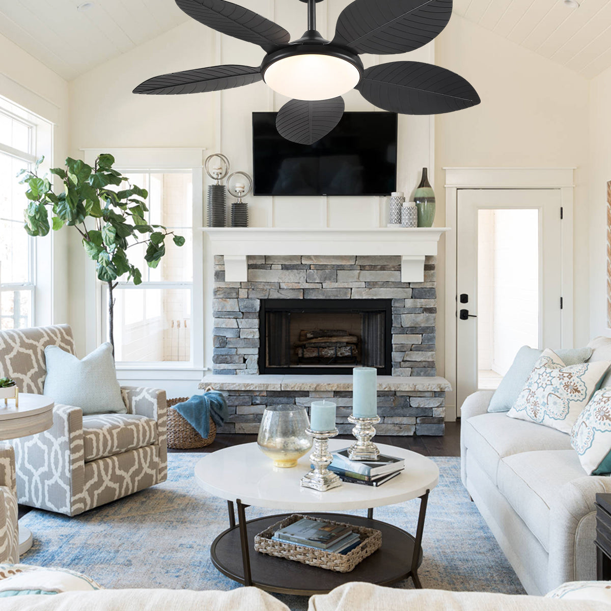 Ceiling Fans with Light and Remote Waterproof Wet Rated Ceiling Fan, 6 Speeds Modern Black Fan Lights 52"