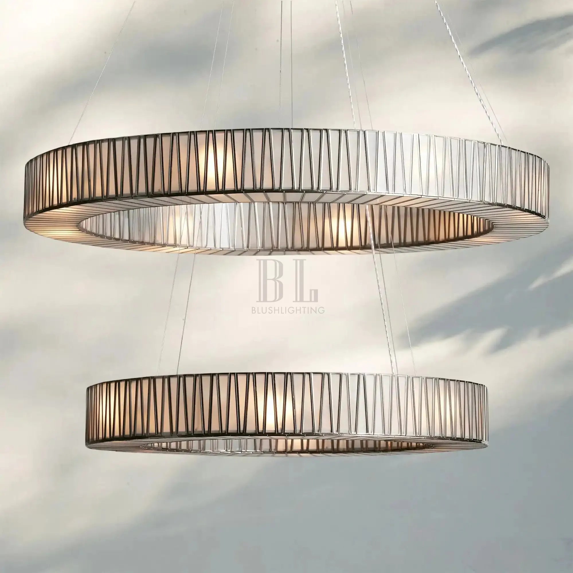 Lattic Glass Tiered Round Chandelier 36'' 47''