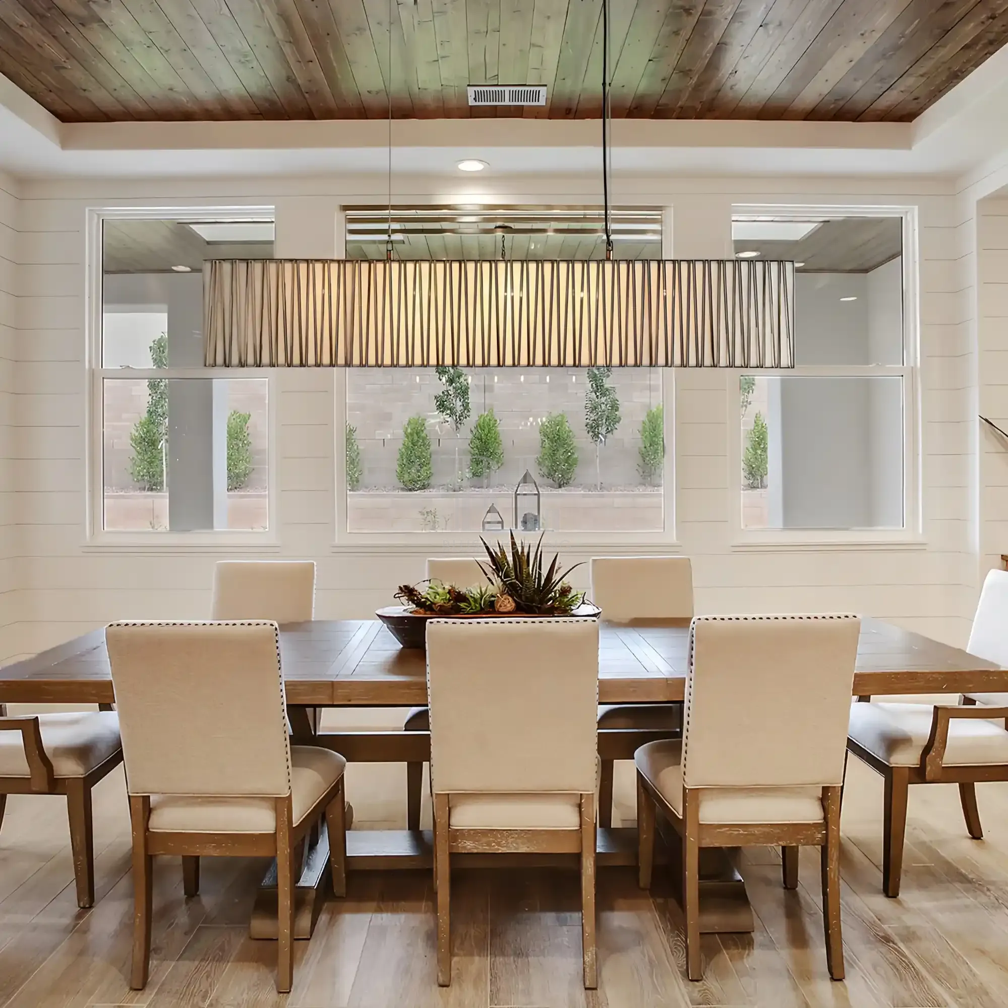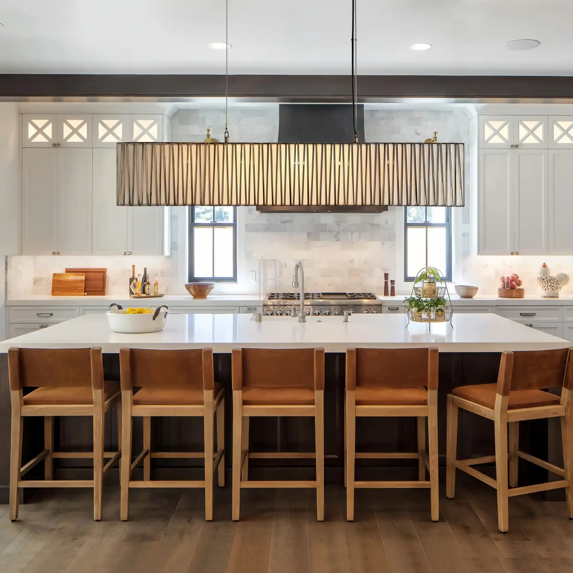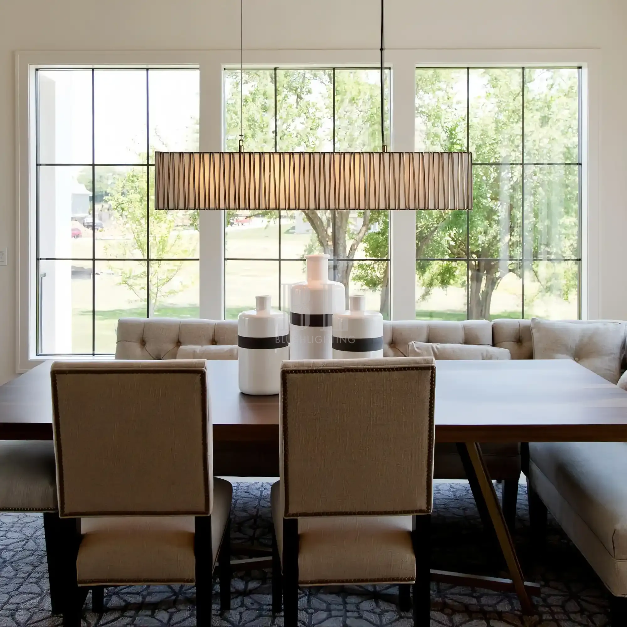 Jean Modern Marble Alabaster Linear Chandelier Over Dining Table