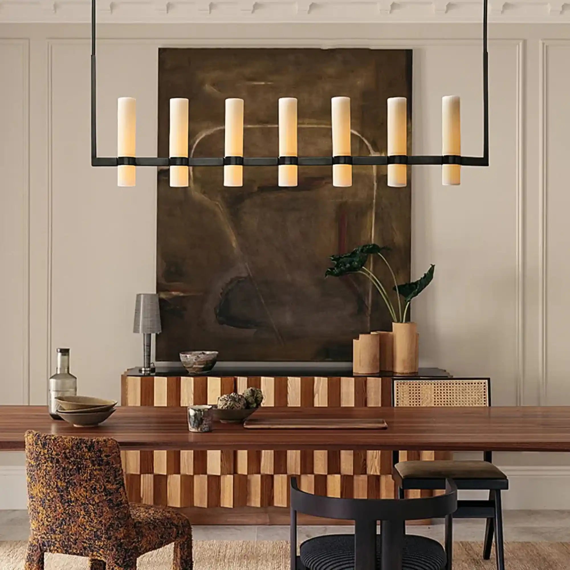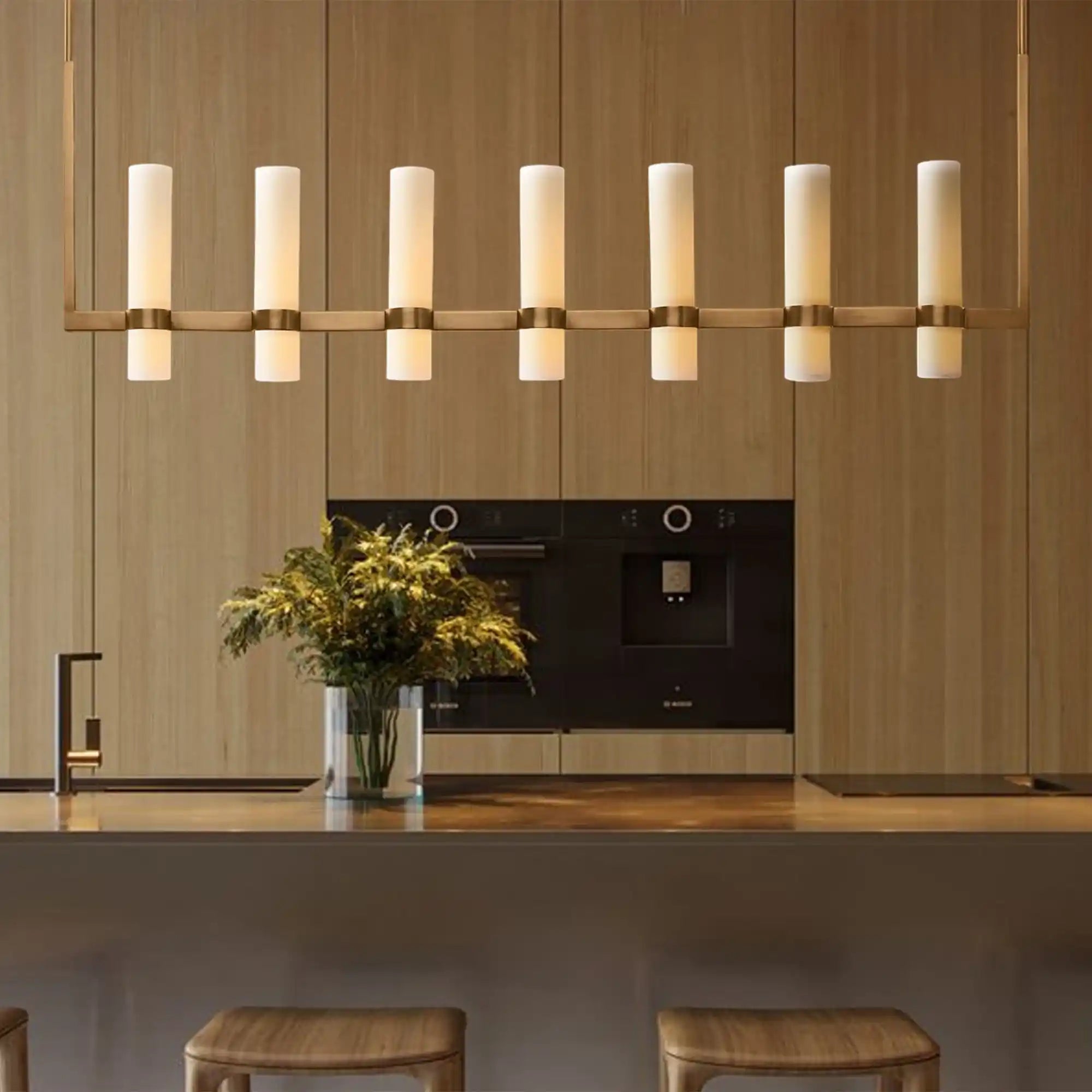 Ravalla Linear Milk Glass Chandelier 59" 71" for Dinning Room