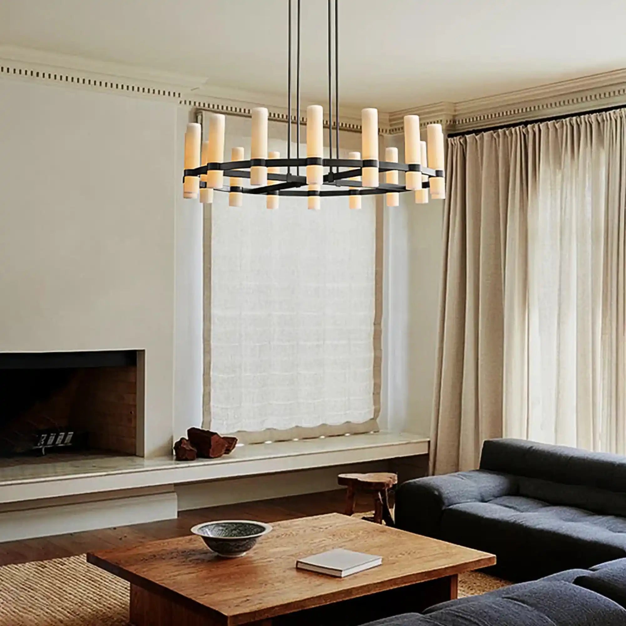 Pauilla Fabric Shade Round Chandelier 36" 48" 60″
