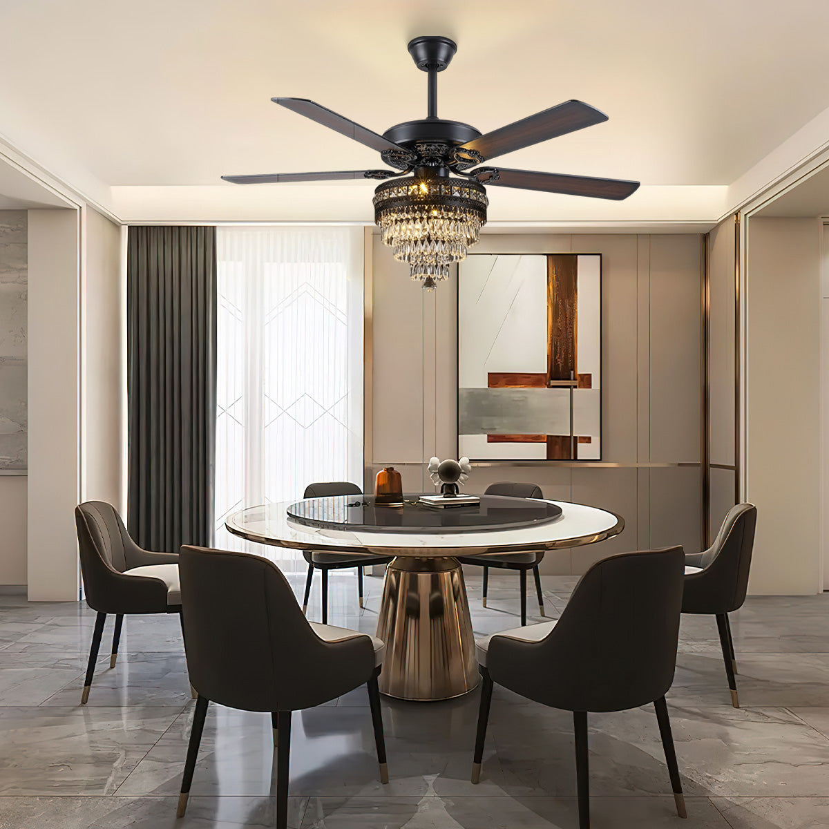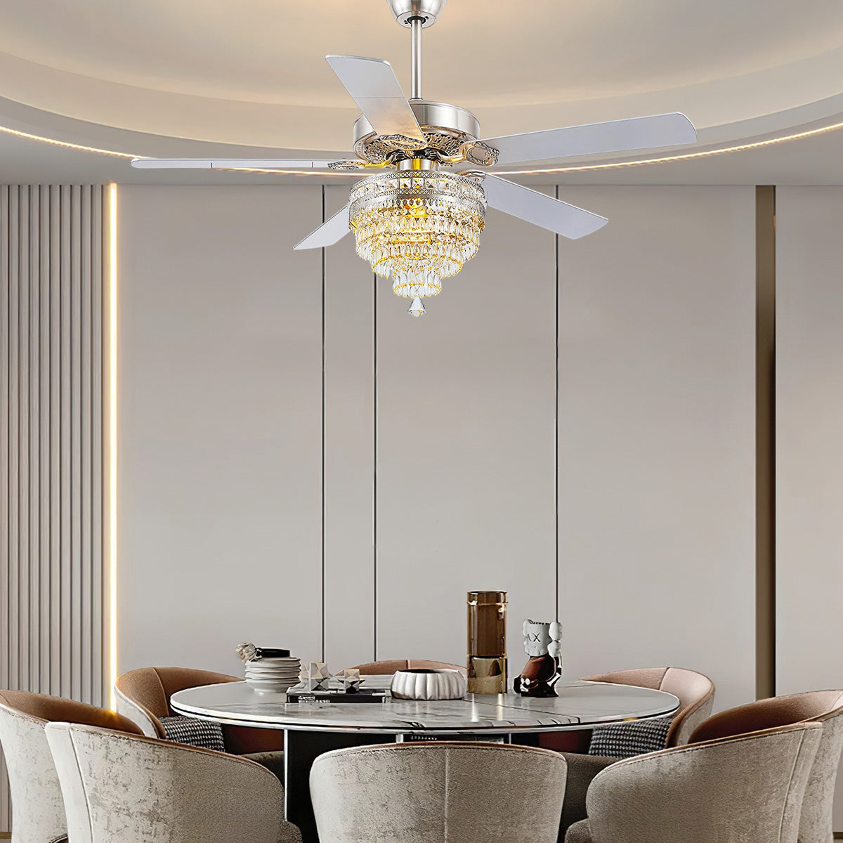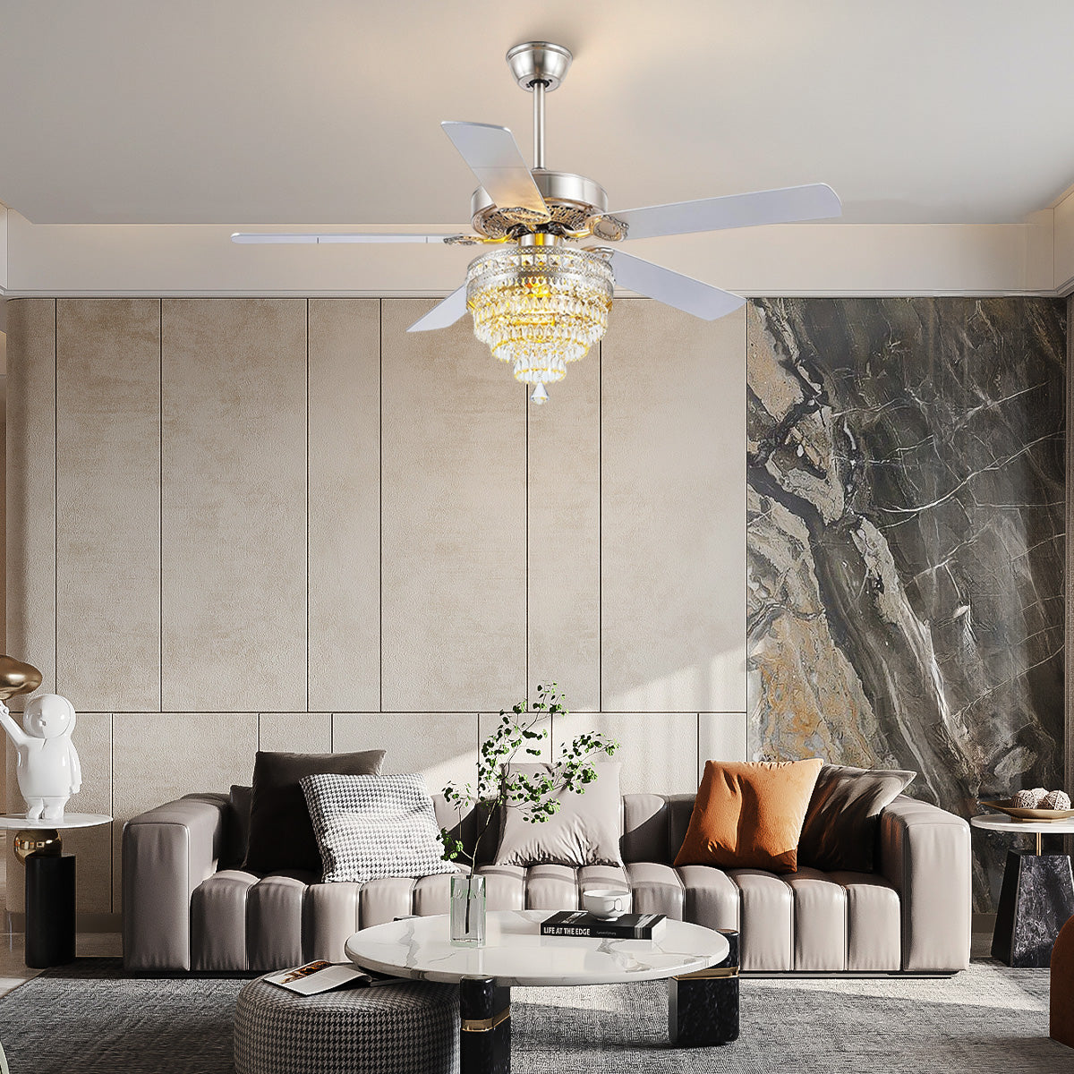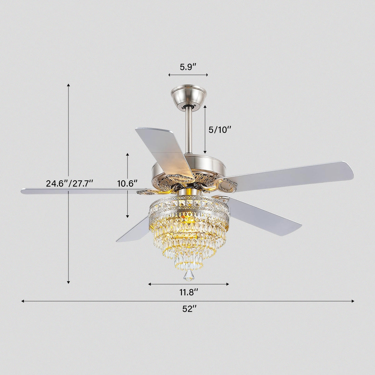 Noiseless Crystal Ceiling Fan Fandelier with Lights 52"