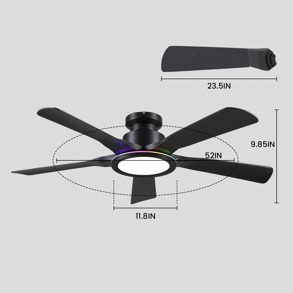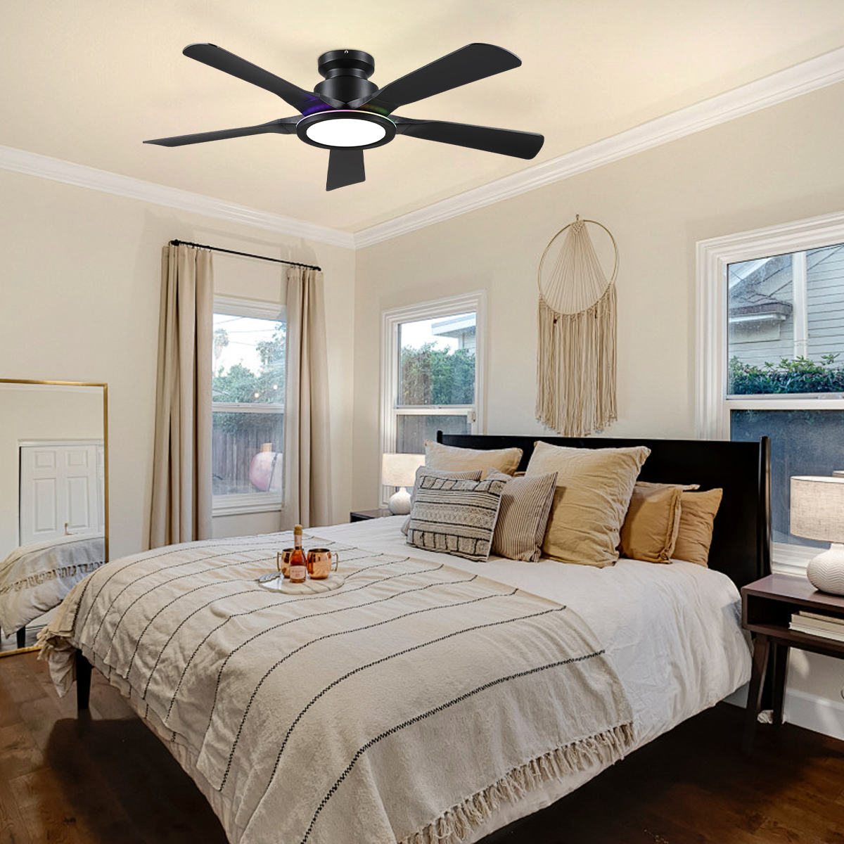 Caged Ceiling Fan with Light and Remote Black Bladeless Reversible Low Profile 19"
