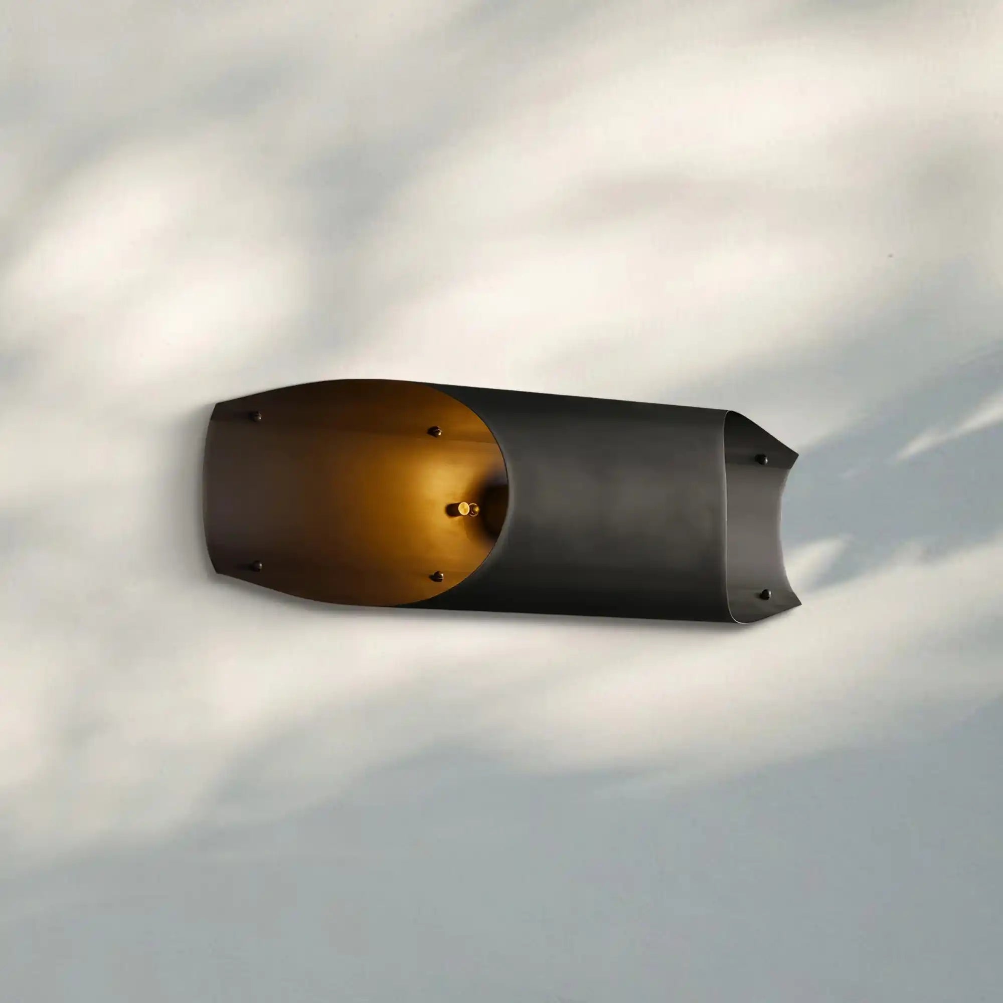 A single, ribbon-like sheet of undulating brass defines Robert Sonneman's sculptural sconce. An iconic midcentury design – now available for the first time in solid brass – the fixture glows with the warmth of its burnished finish, casting a soft, diffused light.