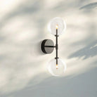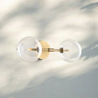 The Glass Globe collection showcases exquisite craftsmanship with handblown glass globes floating at both ends of a solid brass frame. Each piece is meticulously crafted by master glassblowers, blending dynamic fluidity with a sleek, modern architectural design. The clear borosilicate glass globes offer a refined, contemporary look, while the solid brass frame adds durability and elegance to any space.