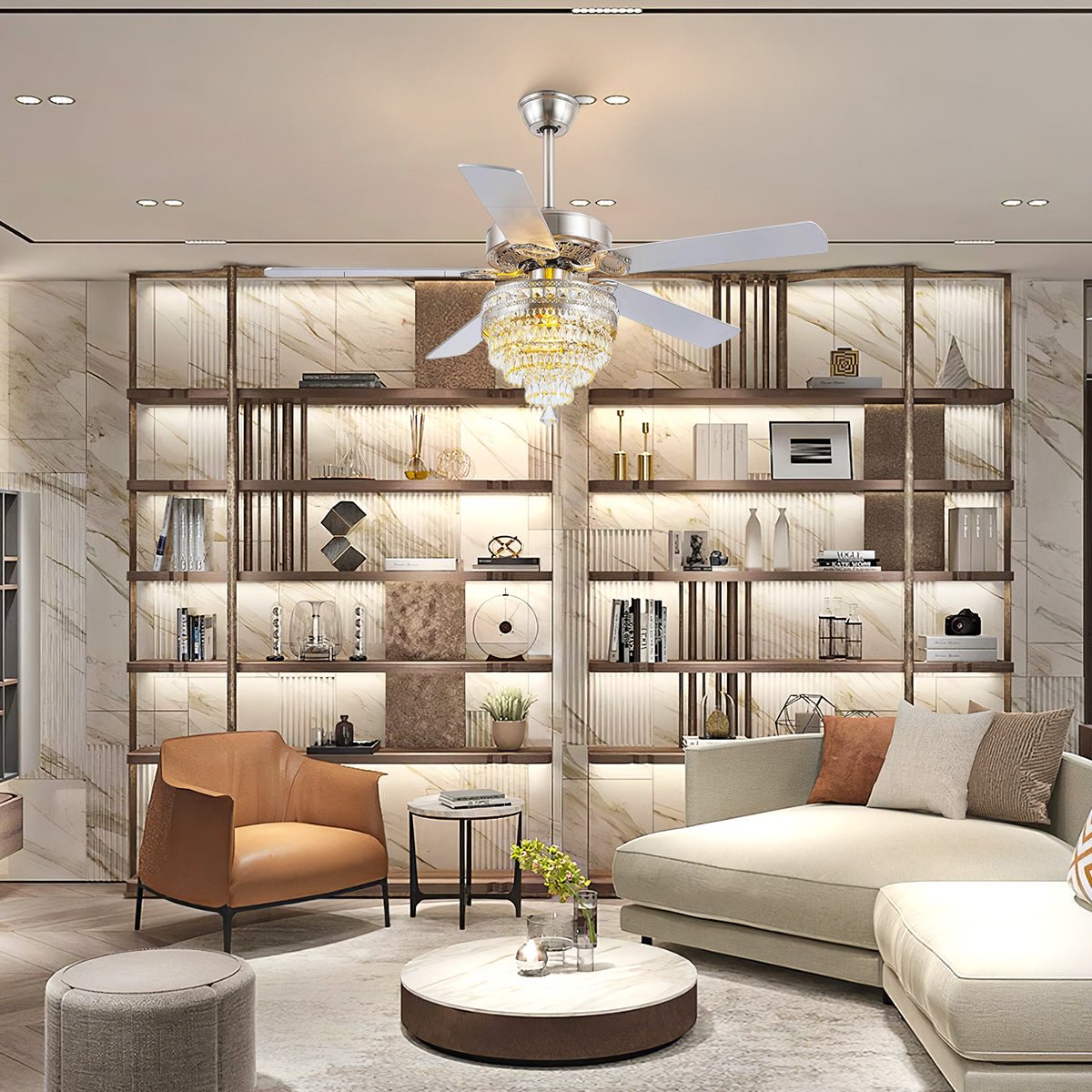 Noiseless Crystal Ceiling Fan Fandelier with Lights 52"