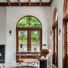Featuring a sleek metal arm cascading into an integrated LED light handcrafted from seeded glass, our Soltaire Wall Sconce mimics the look of a fallen raindrop.