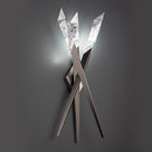 Focus on structured geometric elements that gather to create an exquisite light fixture perfect for custom contemporary spaces. Dimensional metal stems cross to arrange a fascinating silhouette as the Solitude 3-Light LED Wall Light from Schonbek delivers soft illumination. Energy-efficiency is a bonus to the crisp design elements of a fixture with a trio of geometric crystal-like diffusers.