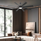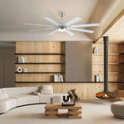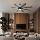 This ceiling fan with light features a modern, minimalist design. The fan blades have a wood-like finish for a warm, natural aesthetic. The light fixture in the center of the fan is round and emits a soft, ambient light. Often installed in modern living rooms, dining rooms, or offices, ceiling fans are both practical and stylish.