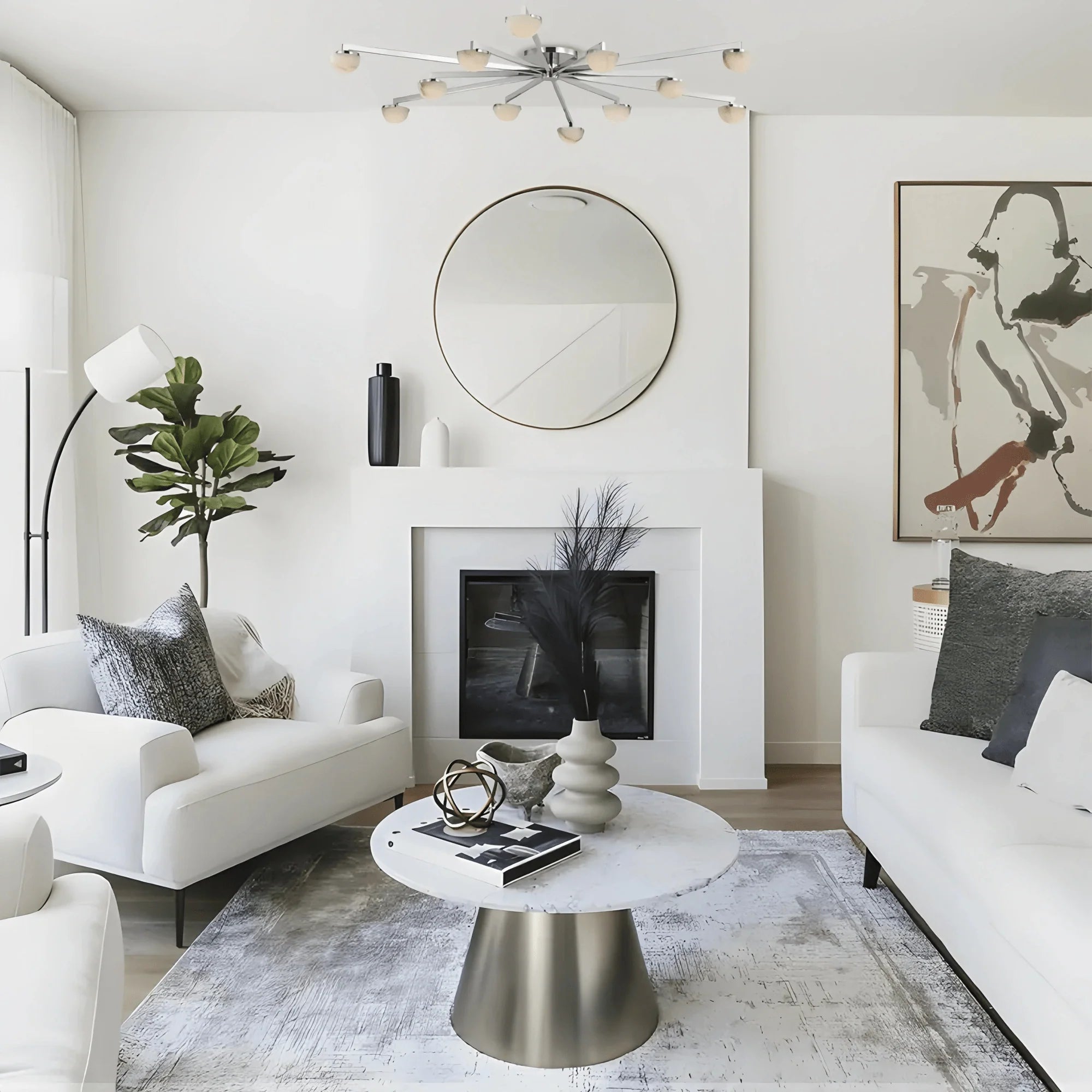 Minimalist midcentury Italian lighting with metal frames and alabaster shades, offering warm ambient glow and timeless elegance.
